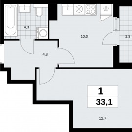 Продается 1-комн. квартира в ЖК "Бунинские кварталы" на 9 этаже. Квартира без отделки, после оформления собственности можно делать ремонт. Общая площадь: 33.1 кв.м., жилая: 12.7 кв.м., площадь просторной кухни-столовой: 10 кв.м. Все окна выходят на одну сторону. В квартире одна лоджия,...