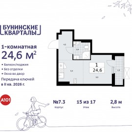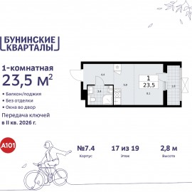 Успейте забронировать по акционной цене, период акции ограничен! Стоимость квартиры указана со скидкой, ваша экономия составит 1, 763, 658 руб. Информация по телефону, наши менеджеры вам все расскажут. 1-комн. квартира-студия от застройщика в ЖК "Бунинские кварталы" на 19 этаже....