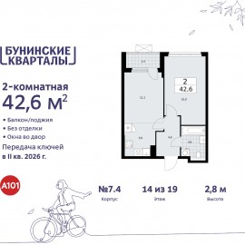 2-комн. квартира в ЖК "Бунинские кварталы" на 16 этаже. Квартира без отделки, полностью готова к ремонту. Общая площадь: 42.4 кв.м. Высота потолков 2.8 м. Квартира будет сдана без отделки. Установлены стеклопакеты с повышенной тепло- и шумоизоляцией, установлены элементы...