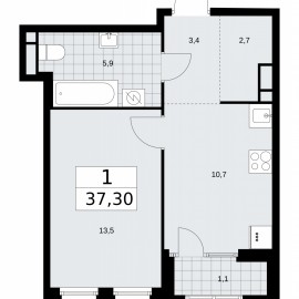 1-комн. квартира от застройщика с предчистовой отделкой в ЖК "Дом на Зорге" на 12 этаже. Общая площадь: 37.3 кв.м., жилая: 13.5 кв.м., площадь просторной кухни-столовой: 10.7 кв.м. Все окна выходят на одну сторону. В квартире одна лоджия, один совмещенный санузел. Высота потолков 3.1 м....