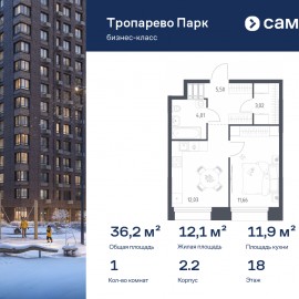 Строим кварталы для жизни с заботой о будущем. Предлагаются 1-комнатные апартаменты бизнес-класса 36, 22 кв.м в корпусе 2.2 на 18 этаже, в МФК «Тропарево Парк» Апартаменты с чистовой отделкой. Доступность дополнительных опций уточняйте у застройщика. Прописка не предусмотрена...