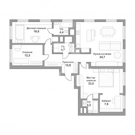 Арт. 48970348. Просторная четырехкомнатная квартира в элитном жилом комплексе "Золотые ключи-1". Функциональная планировка: кухня-столовая, гостиная, три спальни, кабинет, два полноценных санузла, гардеробная, кладовая комната. Отделка выполнена в современном стиле. Квартира...