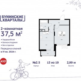 Продается двухкомнатная квартира с европланировкой от застройщика в ЖК "Бунинские кварталы" на 13 этаже. Квартира без отделки, полностью готова к ремонту. Общая площадь: 37.7 кв.м., жилая: 19.2 кв.м., суммарная площадь гостиной-столовой с кухонной зоной: 12.7 кв.м. Европейская...