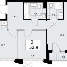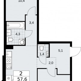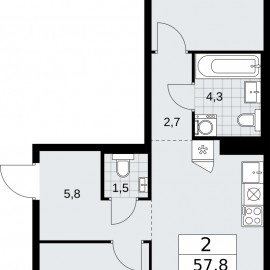 2-комн. квартира от застройщика в ЖК "Деснаречье" на 13 этаже. Квартира без отделки, после оформления собственности можно делать ремонт. Общая площадь: 57.8 кв.м., жилая: 25.4 кв.м., площадь просторной кухни-столовой: 16.9 кв.м. Квартира - распашонка, без проходных комнат, окна выходят...