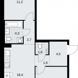 1-комн. квартира в ЖК "Деснаречье" на 11 этаже. Квартира без отделки, после получения ключей можно делать ремонт. Общая площадь: 41.4 кв.м., жилая: 12.6 кв.м., площадь просторной кухни-столовой: 18.5 кв.м. Все окна выходят на одну сторону. В квартире одна лоджия, один совмещенный санузел....