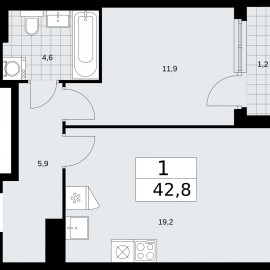1-комн. квартира от застройщика в ЖК "Деснаречье" на 14 этаже. Квартира без отделки, новый владелец может сделать ремонт по индивидуальному дизайн-проекту. Общая площадь: 42.8 кв.м., жилая: 11.9 кв.м., площадь просторной кухни-столовой: 19.2 кв.м. Все окна выходят на одну сторону. В...