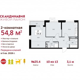 2-комн. квартира бизнес-класса в ЖК "Скандинавия" на 10 этаже. Квартира без отделки, полностью готова к чистовой отделке и дальнейшему ремонту. Общая площадь: 54.8 кв.м., жилая: 23.8 кв.м., площадь просторной кухни-столовой: 11.4 кв.м. Квартира угловая, идеально подойдет любителям...