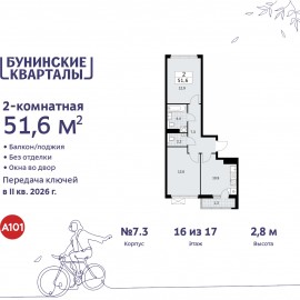 Просторная двухкомнатная квартира в ЖК "Бунинские кварталы" на 16 этаже. Квартира без отделки, после оформления собственности можно делать ремонт. Общая площадь: 51.7 кв.м. Высота потолков 2.8 м. Квартира будет сдана без отделки. Установлены стеклопакеты с повышенной тепло- и...