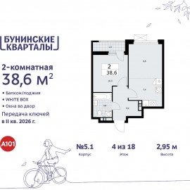 Успейте забронировать, пока действует скидка, предложение ограничено! Стоимость квартиры указана со скидкой, ваша экономия составит 2, 519, 379 руб. Информация по телефону, мы вам все подробно расскажем. Двухкомнатная квартира с европланировкой в ЖК "Бунинские кварталы" на 18...