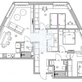 Арт. 64755549. Стильная квартира: кухня-столовая-гостиная, кабинет, мастер-спальня с роскошной ванной, гардеробная, гостевой санузел. Отдельно продаются 2 машиноместа и кладовка. Участник AREA - Ассоциации Агентств Элитной Недвижимости.