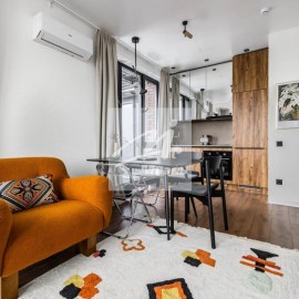 В продаже компактная двухуровневая студия с ремонтом и мебелью недалеко от центра Москвы. Квартира располагается на 4 этаже 5-этажного дома, высота потолков 3.5 м. Площадь помещения по полу 14.4 м2. На первом уровне расположена совмещенная с комнатой кухня и санузел....