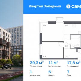 Строим кварталы для жизни с заботой о будущем. Предлагается 1-комнатная квартира комфорт-класса 39, 34 кв.м в корпусе 6 на 7 этаже, в ЖК «Квартал Западный» Квартира без отделки. Доступность опции «отделка» и возможность комплектации мебелью и декором уточняйте у...