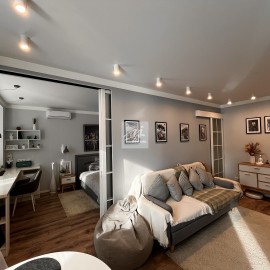 Уютные апартаменты 42 кв.м. с уютной спальней и просторной гостиной. Это пространство где каждая деталь подчинена комфорту и эстетике. Функциональность и простор, потолки 3.2 метра, санузел с душевой. Кухня-гостиная с зоной отдыха и обеденным столом - место для дружеских...