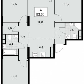 4-комн. квартира с европланировкой от застройщика в ЖК "Южные сады" на 5 этаже. Квартира без отделки, после оформления собственности можно делать ремонт. Общая площадь: 83.6 кв.м., жилая: 57 кв.м., общая площадь гостиной-столовой с кухонной зоной: 23.2 кв.м. Европланировка, кухня и...
