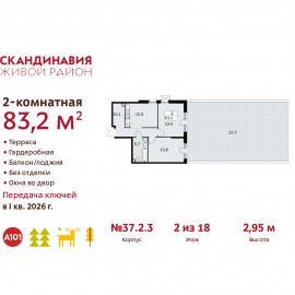 Продается двухкомнатная квартира в ЖК "Скандинавия" на 2 этаже. Квартира без отделки, полностью готова к ремонту. Общая площадь: 83.2 кв.м. Наличие террасы в квартире дает возможность для обустройства дополнительной площади. Высота потолков 2.95 м. Квартира будет сдана без...