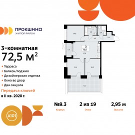 Просторная 3-комн. квартира с отделкой в ЖК "Прокшино" на 2 этаже. Общая площадь: 72.5 кв.м., жилая: 31.7 кв.м., площадь просторной кухни-столовой: 17.9 кв.м. Квартира угловая, окна oбecпeчивaют paвнoмepнoe ocвeщeниe в тeчeниe дня. В квартире один балкон, два совмещенных санузла. Наличие в...