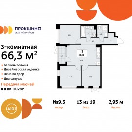 3-комн. квартира от застройщика с отделкой в ЖК "Прокшино" на 6 этаже. Общая площадь: 66.3 кв.м., жилая: 31.9 кв.м., площадь просторной кухни-столовой: 17.8 кв.м. Квартира угловая, окна oбecпeчивaют paвнoмepнoe ocвeщeниe в тeчeниe дня. В квартире одна лоджия, два совмещенных санузла. Высота...