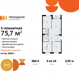 Просторная 3-комн. квартира с отделкой в ЖК "Прокшино" на 16 этаже. Общая площадь: 77.9 кв.м., жилая: 36.3 кв.м., площадь просторной кухни-столовой: 21.2 кв.м. Квартира угловая, окна oбecпeчивaют paвнoмepнoe ocвeщeниe в тeчeниe дня. В квартире одна лоджия, два совмещенных санузла. Высота потолков...
