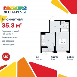 Просторная 1-комн. квартира в ЖК "Деснаречье" на 7 этаже. Квартира без отделки, полностью готова к чистовой отделке и дальнейшему ремонту. Общая площадь: 35.3 кв.м., жилая: 13.4 кв.м., площадь просторной кухни-столовой: 9.9 кв.м. Все окна выходят на одну сторону. В квартире одна лоджия,...
