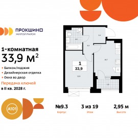Просторная 1-комн. квартира с отделкой в ЖК "Прокшино" на 3 этаже. Общая площадь: 33.9 кв.м., жилая: 11.9 кв.м., площадь просторной кухни-столовой: 10.7 кв.м. Все окна выходят на одну сторону. В квартире одна лоджия, один совмещенный санузел. Высота потолков 2.95 м. Эта квартира будет сдана...