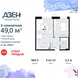 Просторная двухкомнатная квартира бизнес-класса с европланировкой в ЖК "Дзен-кварталы" на 2 этаже. Квартира без отделки, полностью готова к чистовой отделке и дальнейшему ремонту. Общая площадь: 49 кв.м., жилая: 30.1 кв.м., суммарная площадь гостиной-столовой с кухонной зоной: 25.1...