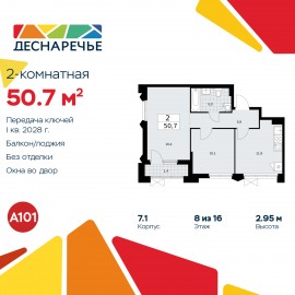 Просторная двухкомнатная квартира в ЖК "Деснаречье" на 8 этаже. Квартира без отделки, после выдачи ключей можно делать ремонт. Общая площадь: 50.7 кв.м., жилая: 26.5 кв.м., площадь просторной кухни-столовой: 11.9 кв.м. Угловая квартира, идеально подойдет любителям тишины и панорамных...