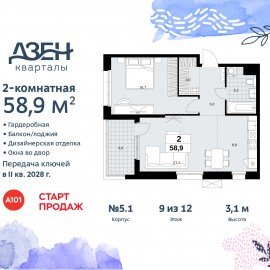 Двухкомнатная квартира бизнес-класса с европланировкой и отделкой в ЖК "Дзен-кварталы" на 9 этаже. Общая площадь: 58.9 кв.м., жилая: 33.8 кв.м., общая площадь гостиной-столовой с кухонной зоной: 26 кв.м. Европланировка, зона гостиной комнаты объединена с кухней. Квартира угловая,...