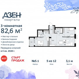 3-комн. квартира бизнес-класса с европланировкой и отделкой в ЖК "Дзен-кварталы" на 5 этаже. Общая площадь: 82.6 кв.м., жилая: 50.6 кв.м., общая площадь гостиной-столовой с кухонной зоной: 33.1 кв.м. Европейская планировка, за счет большой площади кухни-гостиной квартира выглядит...