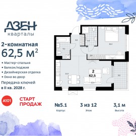 Продается двухкомнатная квартира бизнес-класса с европланировкой и отделкой в ЖК "Дзен-кварталы" на 3 этаже. Общая площадь: 62.5 кв.м., жилая: 30.8 кв.м., общая площадь гостиной-столовой с кухонной зоной: 26.7 кв.м. Европланировка, кухня-гостиная - идеальный вариант для тех, кто любит...