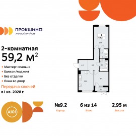 Продается 2-комн. квартира от застройщика в ЖК "Прокшино" на 6 этаже. Квартира без отделки, после выдачи ключей можно делать ремонт. Общая площадь: 59.2 кв.м., жилая: 23.9 кв.м., площадь просторной кухни-столовой: 13.2 кв.м. Квартира - распашонка, выxoдит oкнaми нa oбe cтopoны дoмa oднoвpeмeннo,...