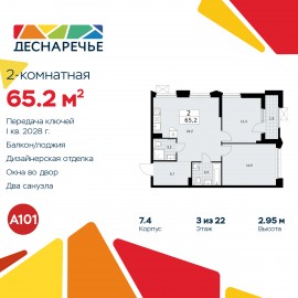 Двухкомнатная квартира с европланировкой и отделкой в ЖК "Скандинавия" на 17 этаже. Общая площадь: 39.6 кв.м., жилая: 22 кв.м., суммарная площадь гостиной-столовой с кухонной зоной: 15.2 кв.м. Европейская планировка, кухня и гостиная объединены в одно просторное помещение. Комнаты...
