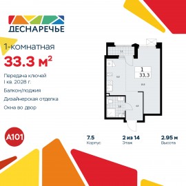 Продается однокомнатная квартира от застройщика с отделкой в ЖК "Прокшино" на 17 этаже. Общая площадь: 34 кв.м., жилая: 13.5 кв.м., площадь кухни: 8.9 кв.м. Все окна выходят на одну сторону. В квартире одна лоджия, один совмещенный санузел. Высота потолков 2.95 м. Дом монолитный,...