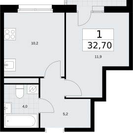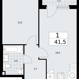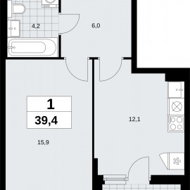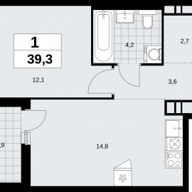 1-комн. квартира в ЖК "Прокшино" на 12 этаже. Квартира без отделки, после выдачи ключей можно делать ремонт. Общая площадь: 39.3 кв.м., жилая: 12.1 кв.м., площадь просторной кухни-столовой: 14.8 кв.м. Все окна выходят на одну сторону. В квартире одна лоджия, один совмещенный санузел....