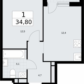 1-комн. квартира от застройщика с отделкой в ЖК "Родные кварталы" на 9 этаже. Общая площадь: 34.8 кв.м., жилая: 12.5 кв.м., площадь просторной кухни-столовой: 12.4 кв.м. Все окна выходят на одну сторону. В квартире одна лоджия, один совмещенный санузел. Высота потолков 2.9 м. Дом...