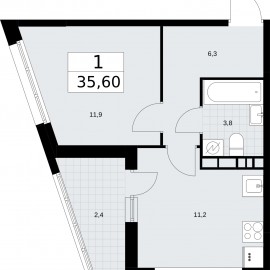1-комн. квартира от застройщика с отделкой в ЖК "Родные кварталы" на 8 этаже. Общая площадь: 35.6 кв.м., жилая: 11.9 кв.м., площадь просторной кухни-столовой: 11.2 кв.м. Квартира угловая, очень светлая, естественная вентиляция при открытии окон. В квартире одна лоджия, один совмещенный...