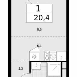 1-комн. квартира-студия в ЖК "Деснаречье" на 15 этаже. Квартира без отделки, после получения ключей можно делать ремонт. Общая площадь: 20.4 кв.м., площадь гостиной 13.6 кв.м., из которых 5.1 кв.м. выделено под кухонную зону. Все окна выходят на одну сторону. В квартире один балкон, один...