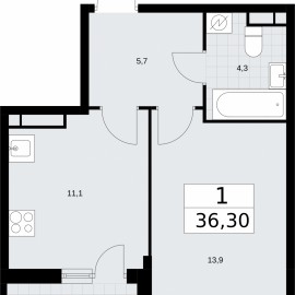 Продается 1-комн. квартира от застройщика с отделкой в ЖК "Родные кварталы" на 4 этаже. Общая площадь: 36.3 кв.м., жилая: 13.9 кв.м., площадь просторной кухни-столовой: 11.1 кв.м. Все окна выходят на одну сторону. В квартире одна лоджия, один совмещенный санузел. Высота потолков 2.9 м....