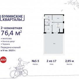Продается 2-комн. квартира с отделкой в ЖК "Бунинские кварталы" на 2 этаже. Общая площадь: 76.7 кв.м. Наличие в квартире террасы дает возможность для обустройства дополнительной площади. Высота потолков 2.95 м. В квартире будет выполнена полная отделка по одному из нескольких...