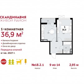1-комн. квартира от застройщика с отделкой в ЖК "Скандинавия" на 9 этаже. Общая площадь: 36.9 кв.м., жилая: 14 кв.м., площадь просторной кухни-столовой: 10.8 кв.м. Все окна выходят на одну сторону. В квартире одна лоджия, один совмещенный санузел. Высота потолков 2.95 м. Дом монолитный,...