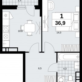 1-комн. квартира от застройщика с отделкой в ЖК "Скандинавия" на 9 этаже. Общая площадь: 36.9 кв.м., жилая: 14 кв.м., площадь просторной кухни-столовой: 10.8 кв.м. Все окна выходят на одну сторону. В квартире одна лоджия, один совмещенный санузел. Высота потолков 2.95 м. В квартире будет...