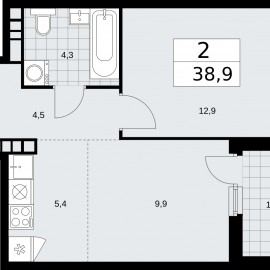 2-комн. квартира с европланировкой от застройщика в ЖК "Бунинские кварталы" на 22 этаже. Квартира без отделки, полностью готова к ремонту. Общая площадь: 38.9 кв.м., жилая: 22.8 кв.м., суммарная площадь гостиной-столовой с кухонной зоной: 15.3 кв.м. Европланировка, кухня-гостиная -...
