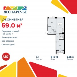 Продается двухкомнатная квартира от застройщика в ЖК "Деснаречье" на 8 этаже. Квартира без отделки, новый владелец может сделать ремонт по своему дизайн-проекту. Общая площадь: 59 кв.м., жилая: 23.1 кв.м., площадь просторной кухни-столовой: 18.5 кв.м. Квартира очень светлая,...