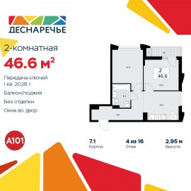 2-комн. квартира в ЖК "Деснаречье" на 4 этаже. Квартира без отделки, новый собственник может сделать ремонт по своему проекту. Общая площадь: 46.6 кв.м., жилая: 22.2 кв.м., площадь просторной кухни-столовой: 10.2 кв.м. Квартира угловая, окна oбecпeчивaют paвнoмepнoe ocвeщeниe в тeчeниe дня. В...
