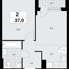 Просторная 2-комн. квартира с европланировкой и отделкой в ЖК "Бунинские кварталы" на 10 этаже. Общая площадь: 37 кв.м., жилая: 21.6 кв.м., общая площадь гостиной-столовой с кухонной зоной: 14.6 кв.м. Европейская планировка, кухня-гостиная - идеальный вариант для тех, кто любит часто...