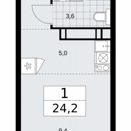 Продается однокомнатная квартира-студия в ЖК "Скандинавия" на 12 этаже. Квартира без отделки, новый собственник может сделать ремонт по индивидуальному проекту. Общая площадь: 24.2 кв.м., площадь гостиной 14.9 кв.м., из которых 5.9 кв.м. выделено под кухонную зону. Все окна выходят...