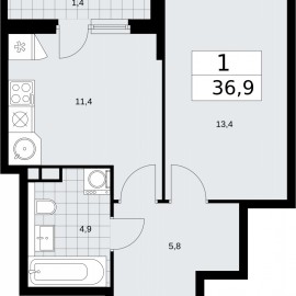 Продается 1-комн. квартира в ЖК "Прокшино" на 3 этаже. Квартира без отделки, после выдачи ключей можно делать ремонт. Общая площадь: 36.9 кв.м., жилая: 13.4 кв.м., площадь просторной кухни-столовой: 11.4 кв.м. Все окна выходят на одну сторону. В квартире одна лоджия, один совмещенный...