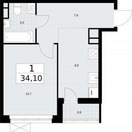 Просторная 1-комн. квартира в ЖК "Родные кварталы" на 8 этаже. Квартира без отделки, после оформления собственности можно делать ремонт. Общая площадь: 34.1 кв.м., жилая: 12.7 кв.м., площадь кухни: 8.9 кв.м. Все окна выходят на одну сторону. В квартире одна лоджия, один совмещенный...