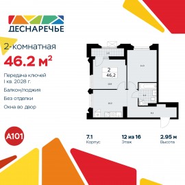 Продается 2-комн. квартира в ЖК "Деснаречье" на 12 этаже. Квартира без отделки, полностью готова к чистовой отделке и дальнейшему ремонту. Общая площадь: 46.2 кв.м., жилая: 22.2 кв.м., площадь просторной кухни-столовой: 10 кв.м. Квартира угловая, окна oбecпeчивaют paвнoмepнoe ocвeщeниe в тeчeниe...