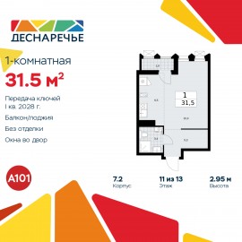 Продается однокомнатная квартира-студия от застройщика в ЖК "Деснаречье" на 11 этаже. Квартира без отделки, после выдачи ключей можно делать ремонт. Общая площадь: 31.5 кв.м., площадь гостиной 21.8 кв.м., из которых 6.5 кв.м. выделено под кухонную зону. Все окна выходят на одну...