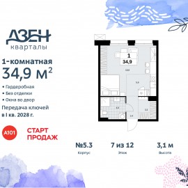 Успейте оформить бронирование по этой цене, предложение ограничено! Стоимость квартиры указана со скидкой, ваша экономия составит 2, 134, 833 руб. Звоните, мы вам все подробно расскажем. 1-комн. квартира бизнес-класса-студия от застройщика в ЖК "Дзен-кварталы" на 7 этаже....